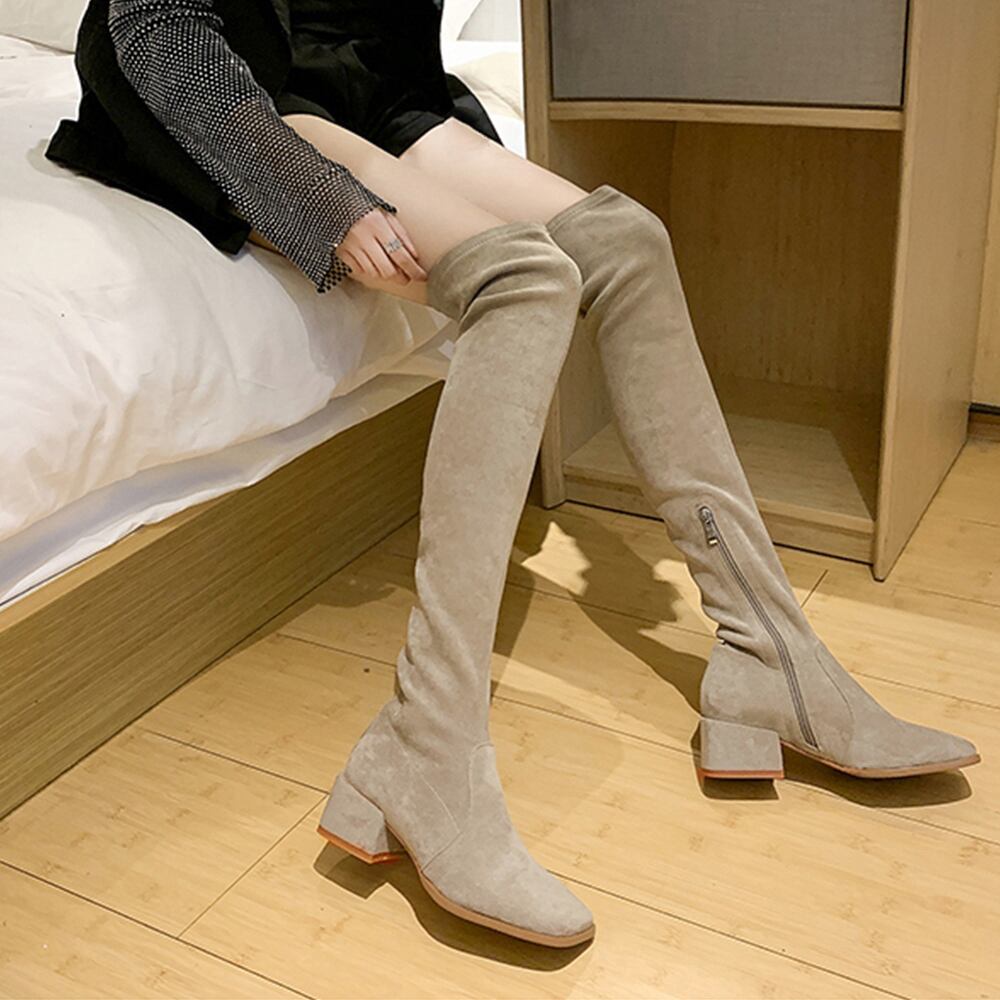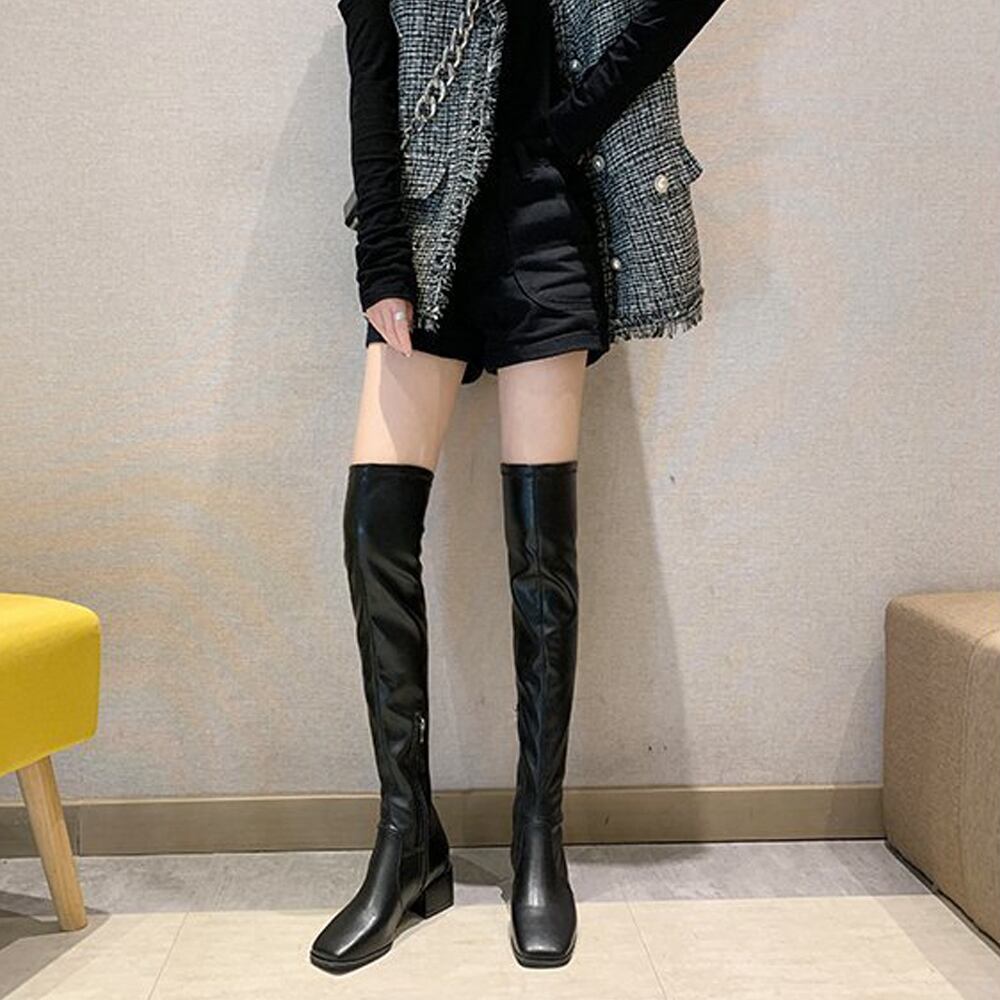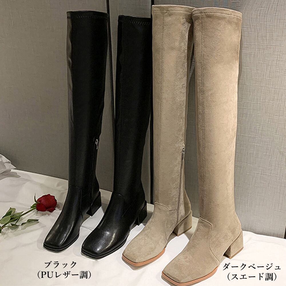 ニーハイブーツ スクエアトゥ 美脚ブーツ