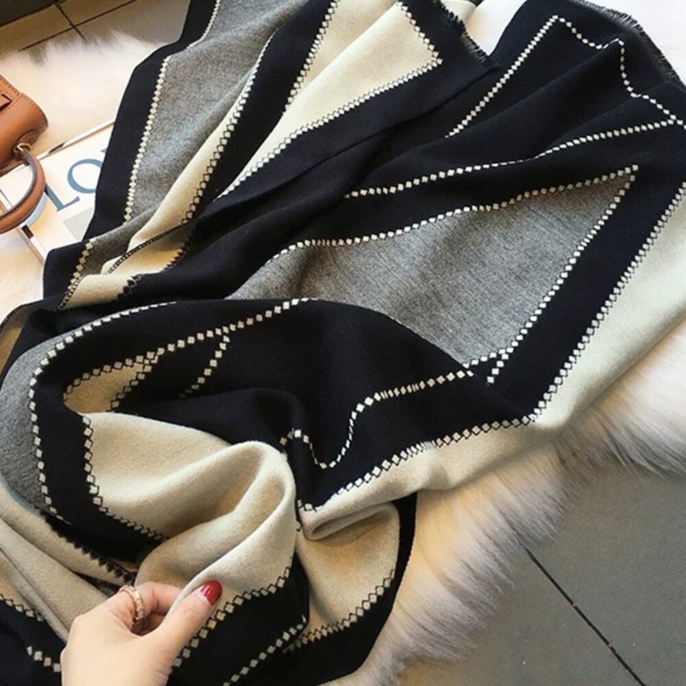 毎年秋冬シーズンのワードローブに欠かせないマストアイテムの大判幾何学柄マフラー
