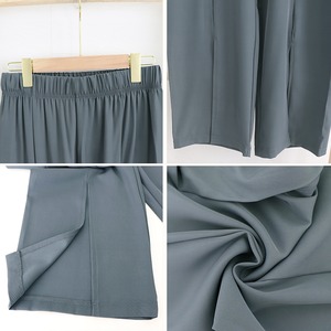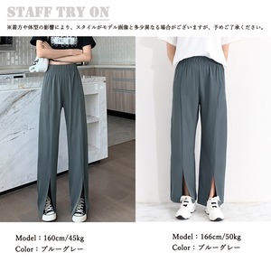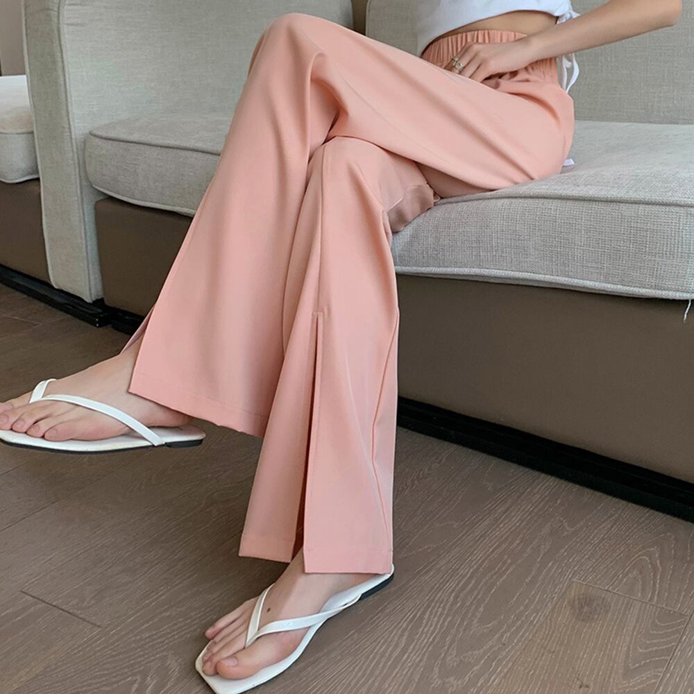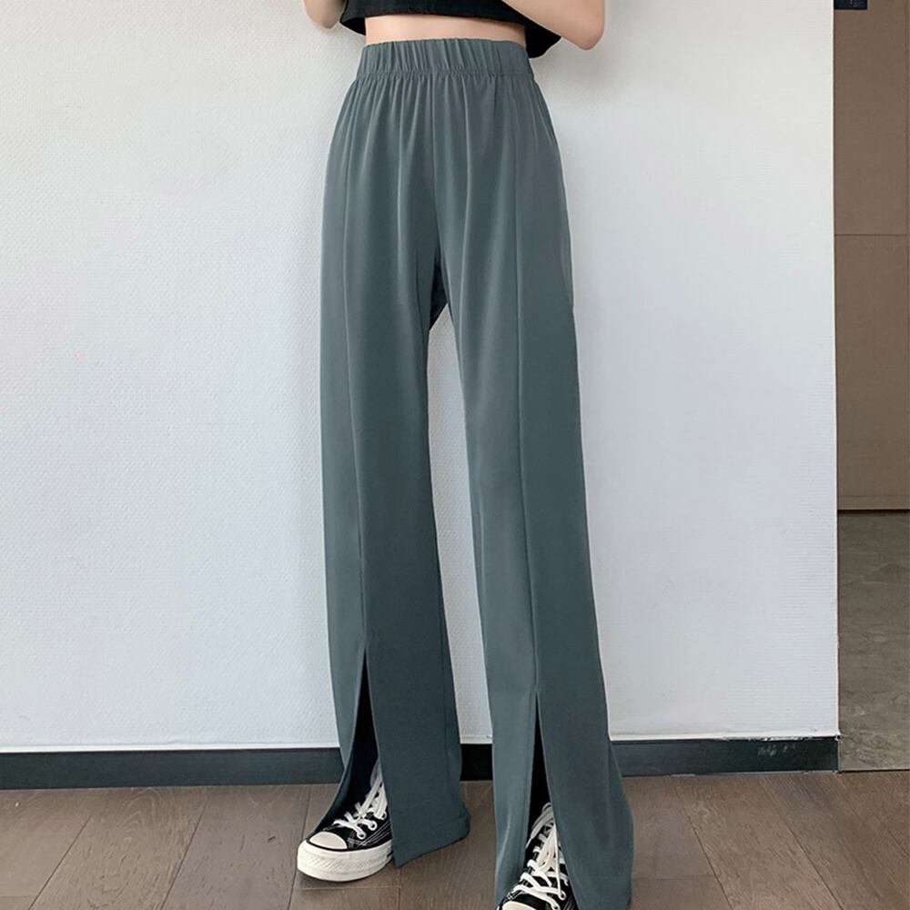 スリットパンツ ハイウエストカラーパンツ ストレートパンツ ウエストゴム ロングパンツ 無地 フレアパンツ