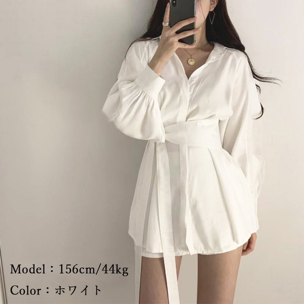 シャツブラウス セットアップ 長袖 ショートパンツ 2点セット ボリューム袖 カーディガン パフスリーブ トップス シャツ