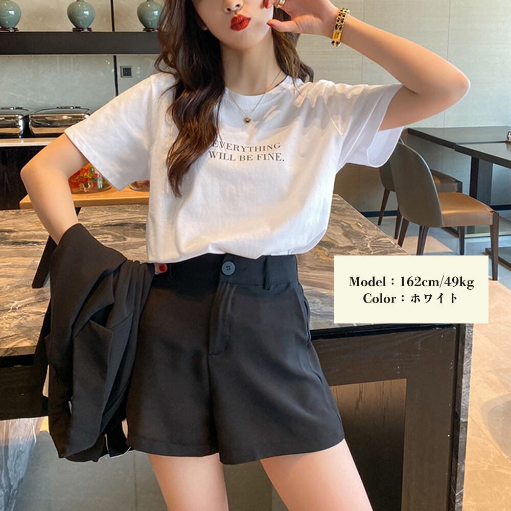半袖Tシャツ 英字柄 ロゴTシャツ カットソー クルーネック ゆったり カジュアル 着やせ シンプル 全5色