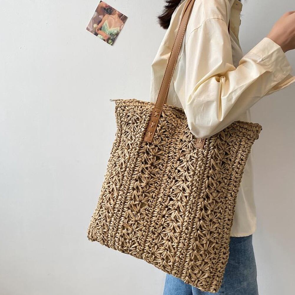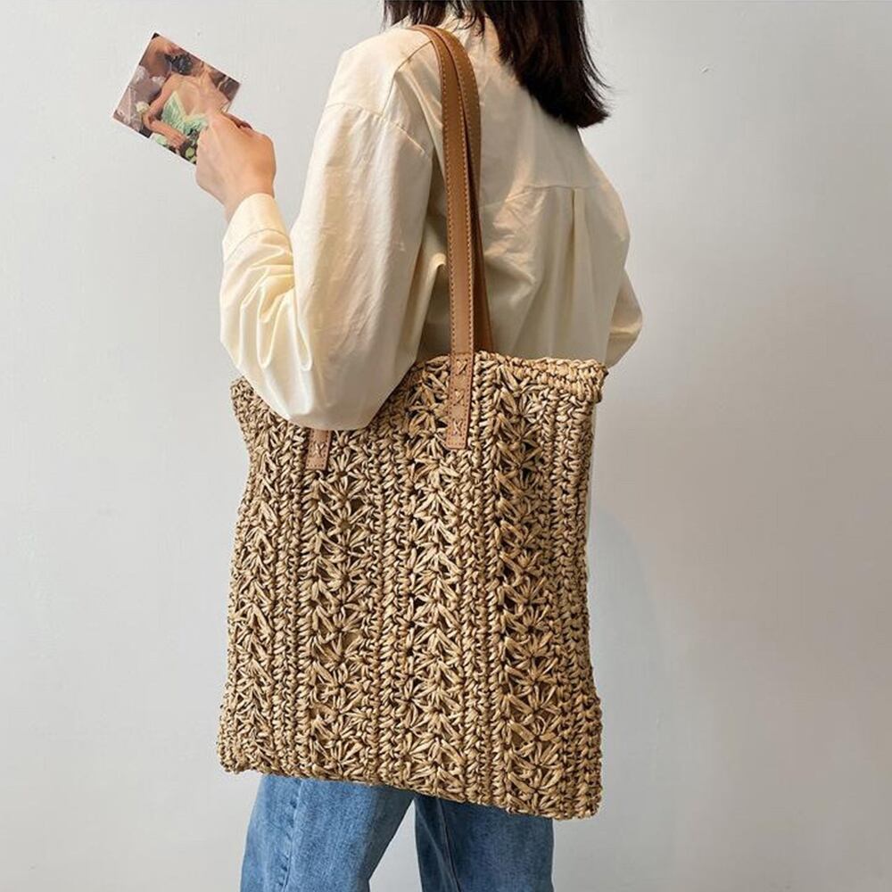 ストローバッグ 大容量 麦わらバック ざっくり編みバッグ トートバッグ 手提げバッグ かごバッグ 軽量