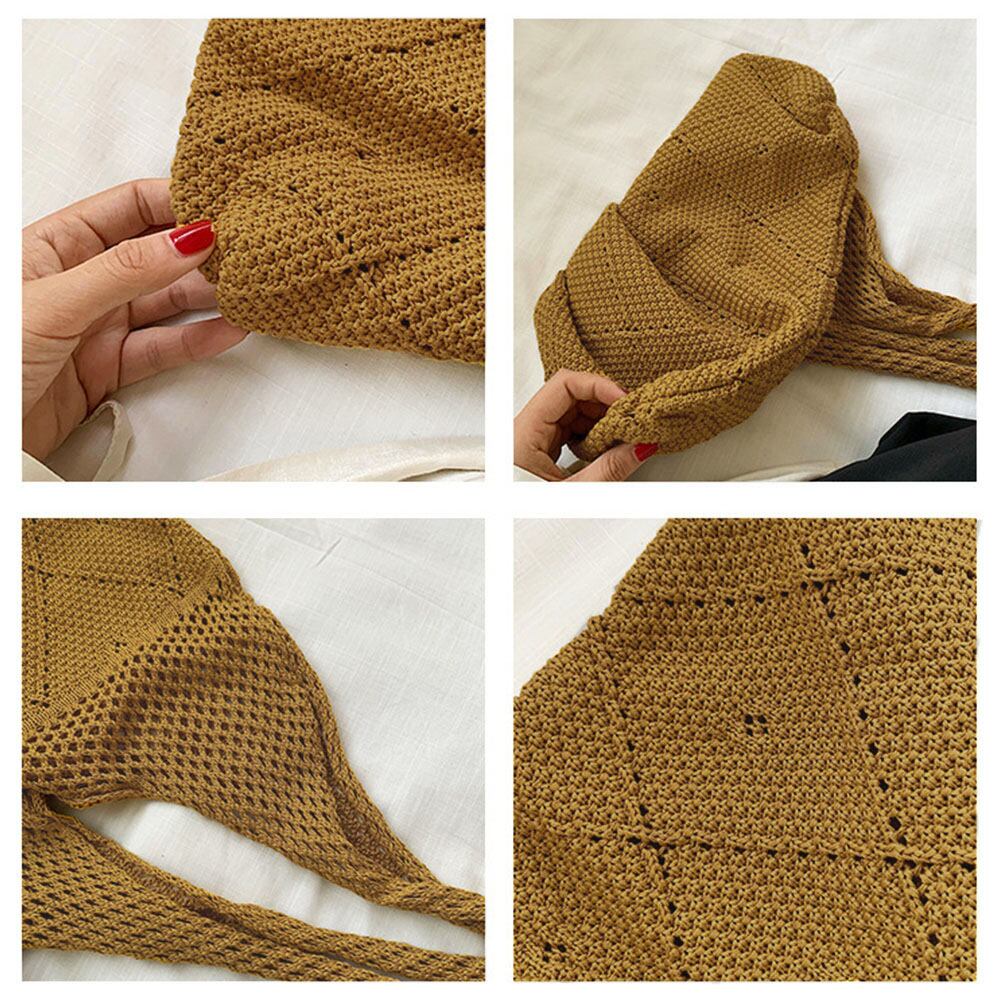 クロシェ編み ニットトートバッグ 透け感 ハンドバッグ 折り畳みバッグ 柔らかい 肩掛けバッグ 大容量 a4対応 ナチュラル 5色