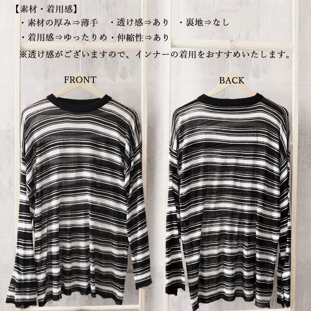 長袖 シースルートップス ラウンドネック プルオーバー ゆったり 透け ボーダー カットソー おしゃれ tシャツ