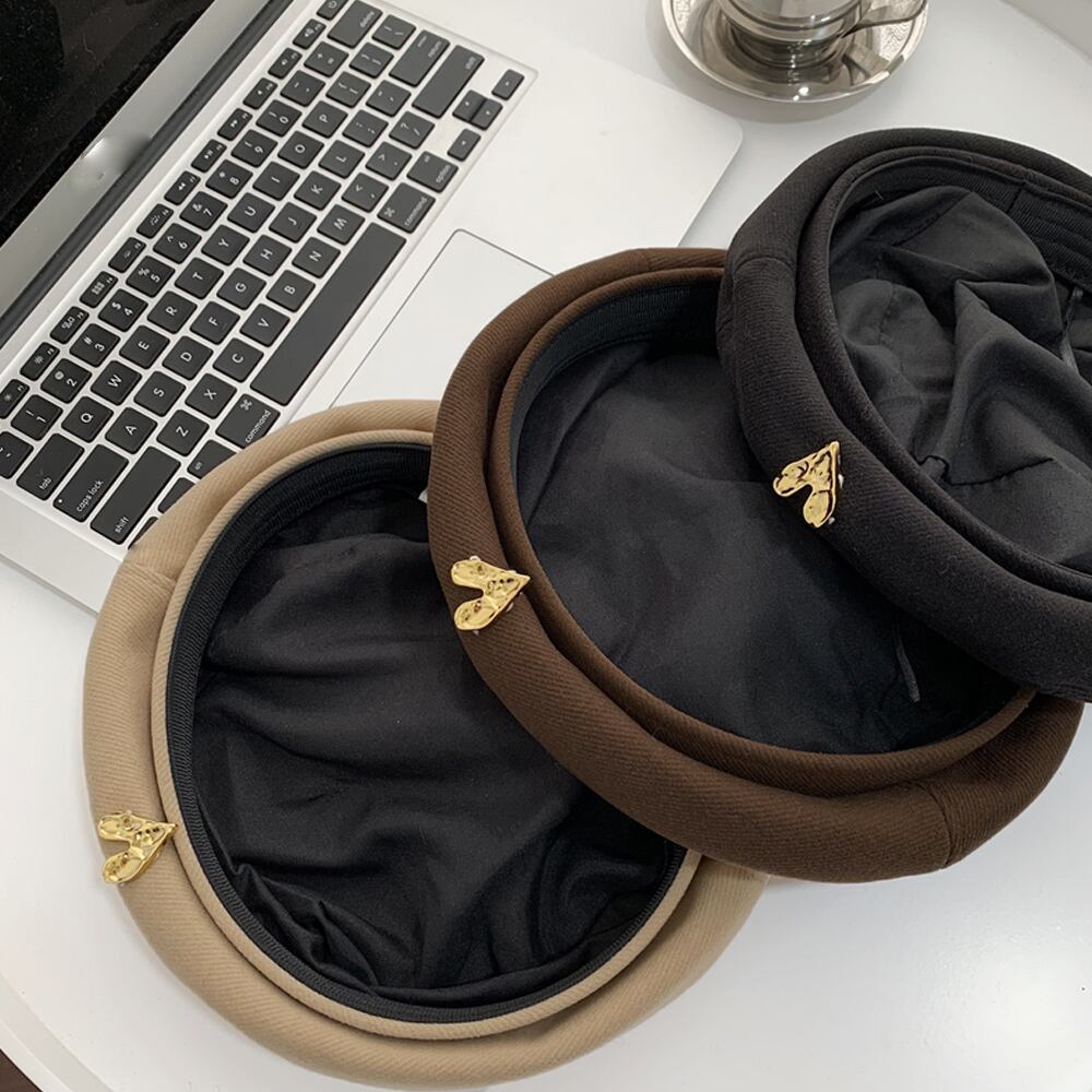 ベレー帽 レディース帽子 3色 レトロ 飾り ハートデザイン おしゃれ ハット カジュアル シンプル