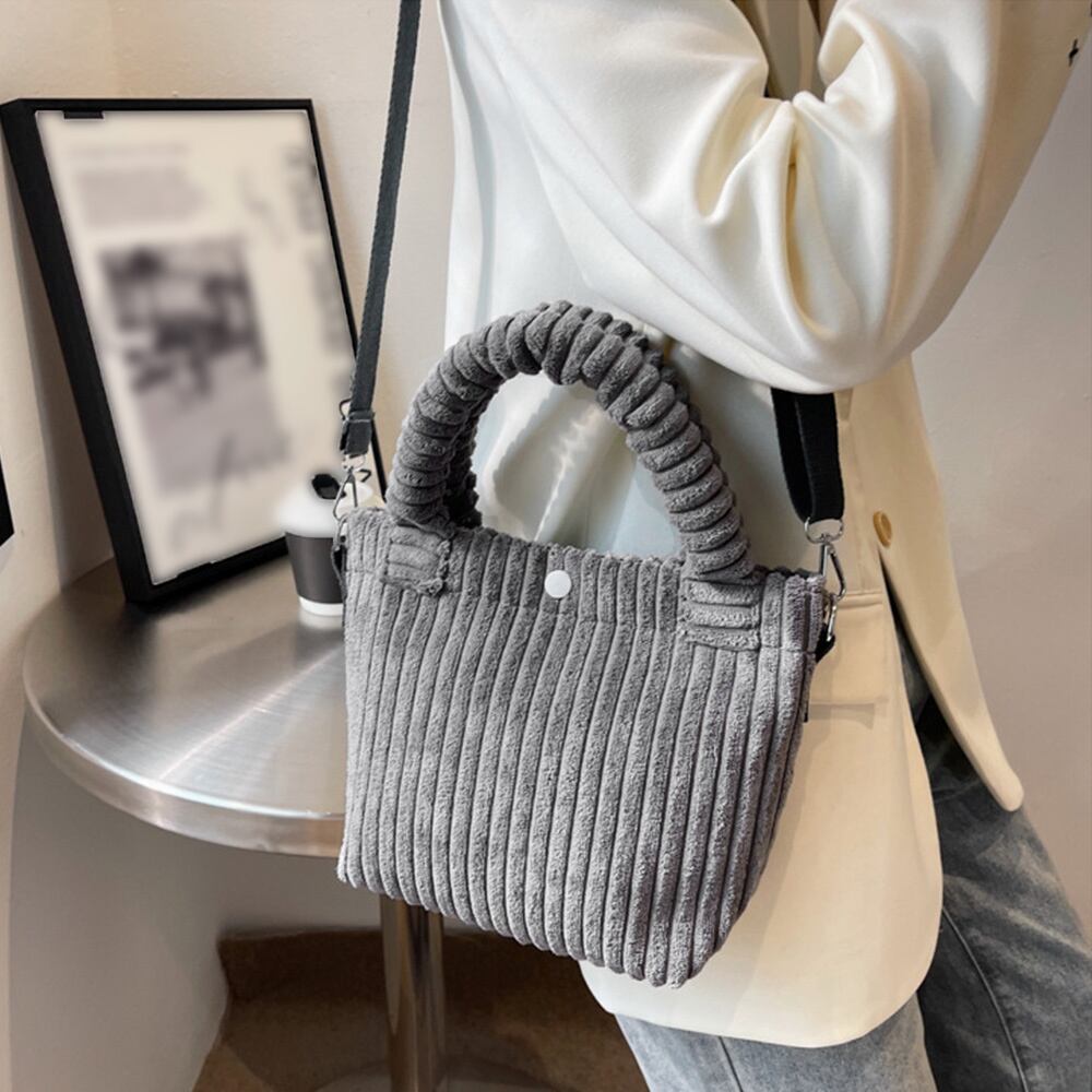 コーデュロイ ショルダーバッグ 2WAY コンパクト ハンドバッグ 無地 ミニトートバッグ バケツバッグ 手提げバッグ