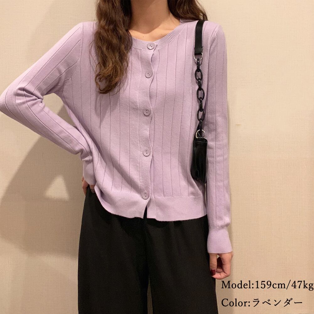 ニットカーディガン リブニット 羽織り ニットトップス 長袖 前開き ニットウェア クルーネック 着まわし