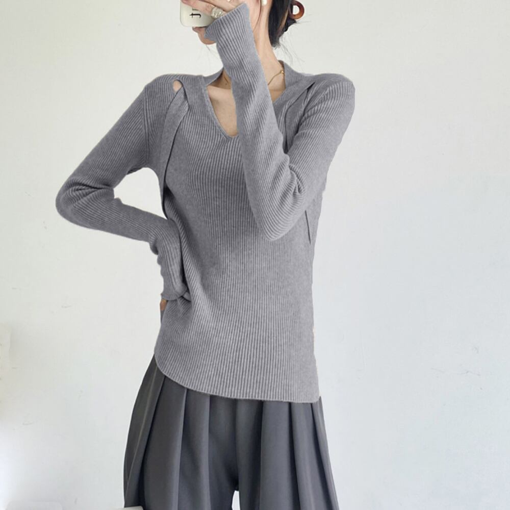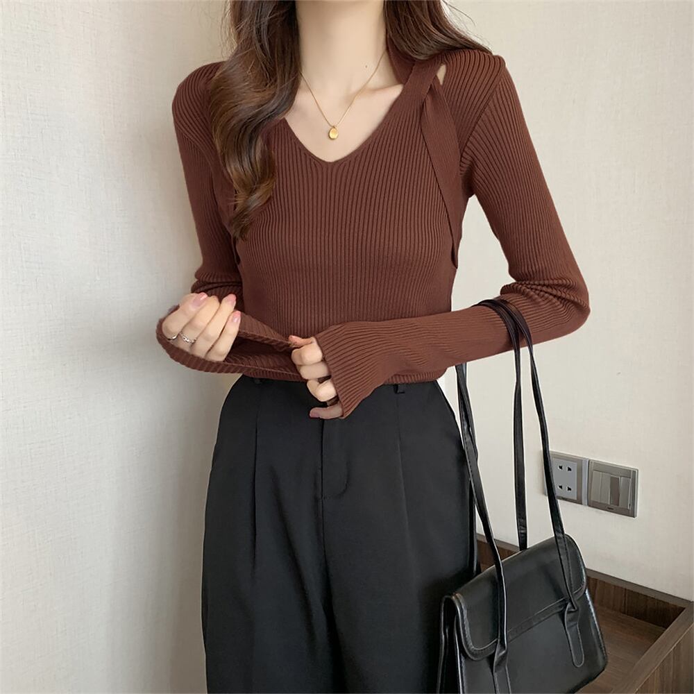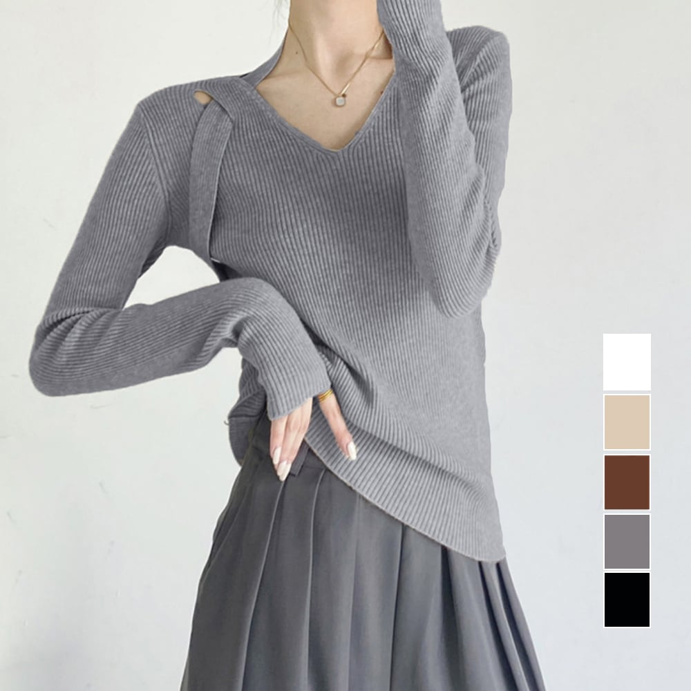 リブニット トップス レディース ニットソー 鎖骨見せ ホルターネック 穴あき クロス