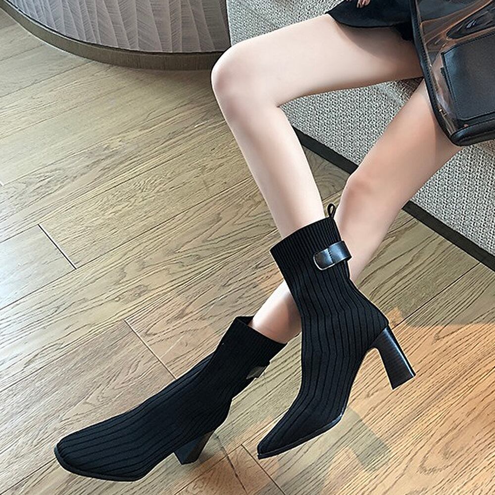 ショートブーツ レディース ブーティ ソックスブーツ リブ 秋冬 ブラック ハイヒール ショート丈
