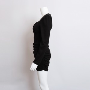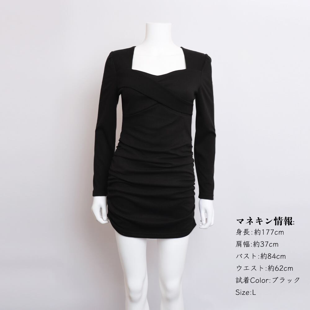 ワンピース ショート丈 レディース 2色 ハイウエスト タイト 長袖ワンピース シャーリング 着やせ