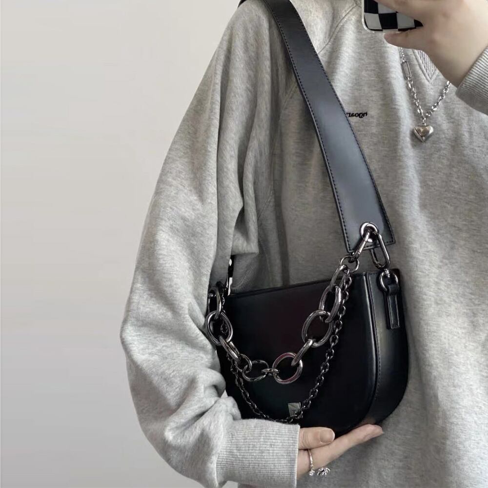 太チェーンバッグ おしゃれ 人気 斜め掛けバッグ 黒 PUレザー肩掛けカバン 2way合皮鞄 ストリート ボディーバッグ