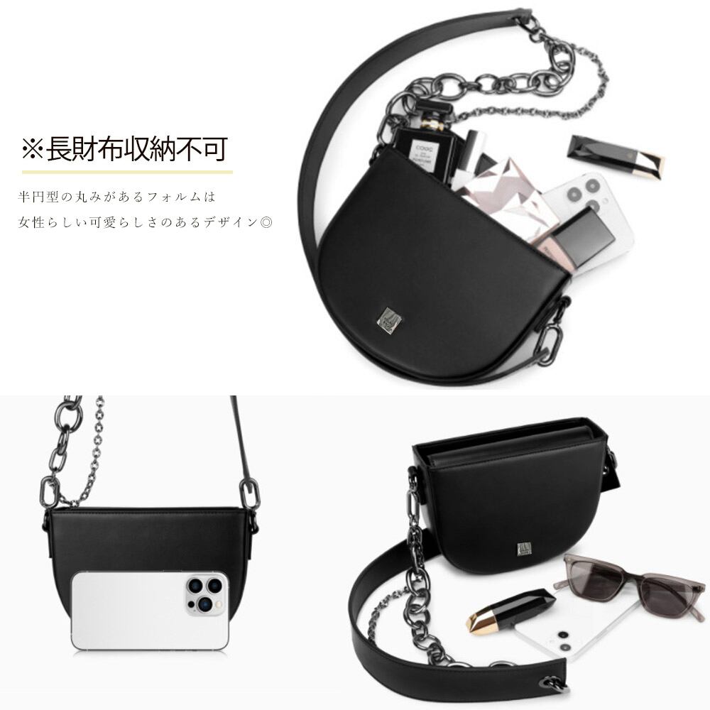 ショルダーバッグ レディース 半円型バッグ 太チェーンバッグ おしゃれ 人気 斜め掛けバッグ 黒 PUレザー