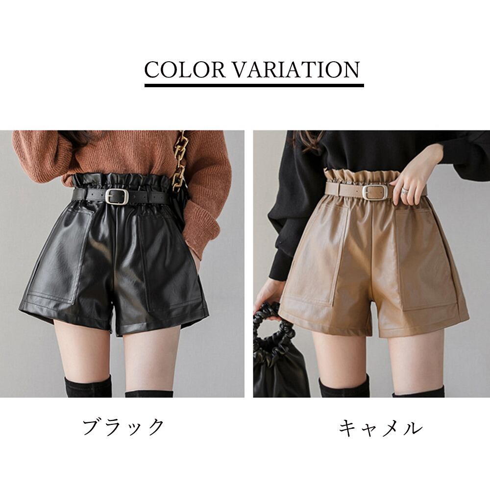 PUレザー ショートパンツ レディース ハイウエスト キュロットパンツ