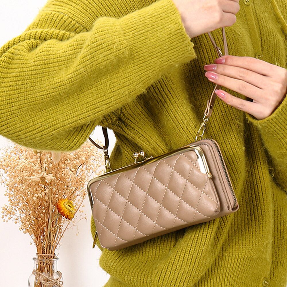 レディース スマホショルダーバッグ 長財布 一体型 がま口スマホポーチ カジュアル コンパクト 大人かわいい ウォレット