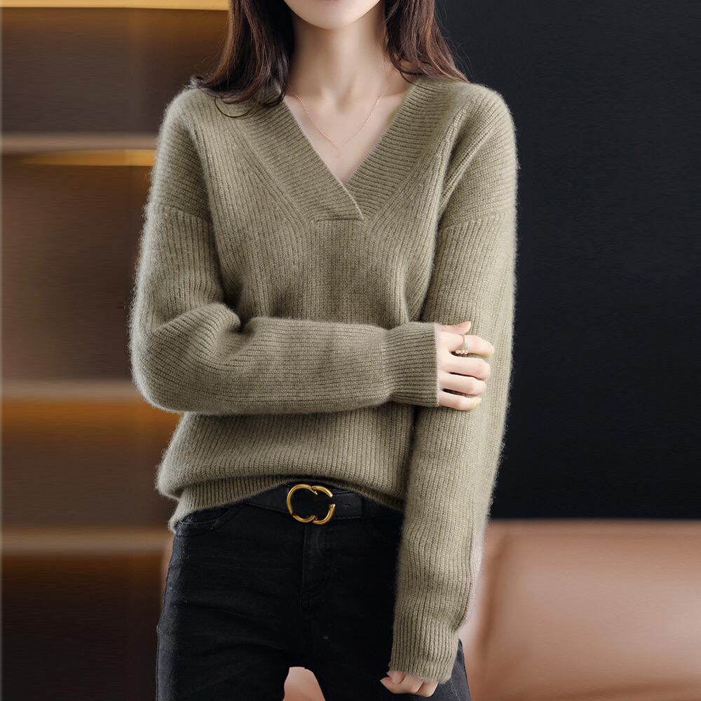 デコルテラインをきれいに見せるvネックニットトップス