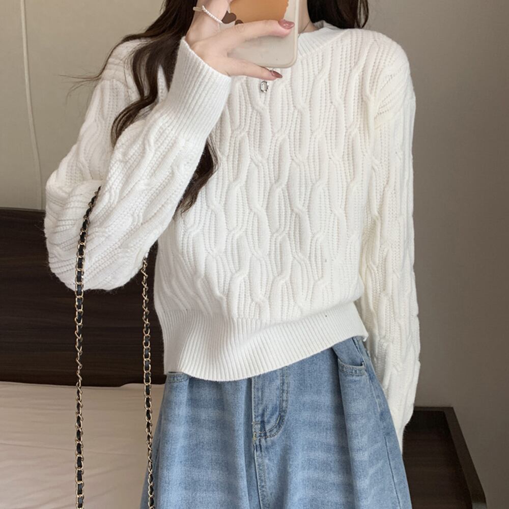 ケーブル編み ニット レディース ラウンドネック ニットプルオーバー 長袖 ニットソー 大人可愛い カジュアル