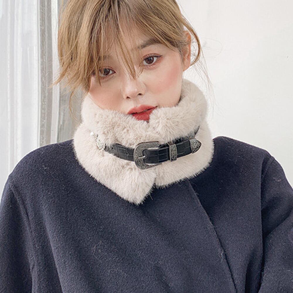 ネックウォーマー マフラー ふわふわ スヌード 韓国風 ボリューミー レディース フェイクファー フェイクレザー