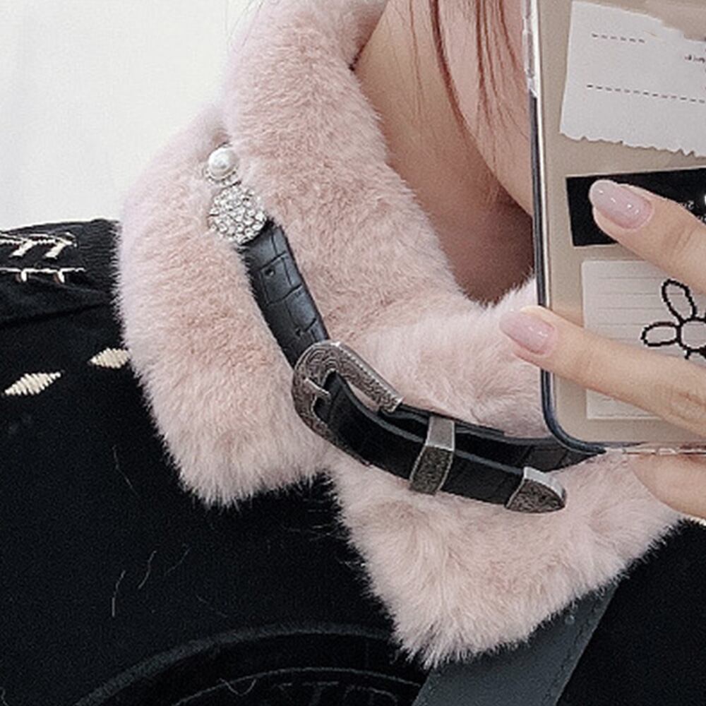 ふわふわした肌触りのいいフェイクファーとフェイクレザーの異素材で仕上げたファースヌード