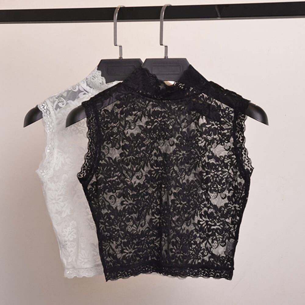 付け襟 花柄レース インナートップス スタンドカラー 総レースブラウス フリルネック 重ね着レースシャツ