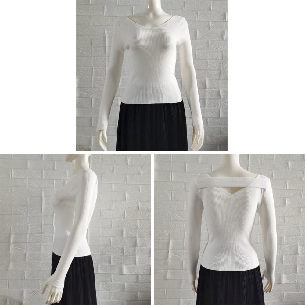 リブニットトップス レディース ニットウェア Vネック 背中見せ ベーシックニットお洒落 通勤 ニットインナー