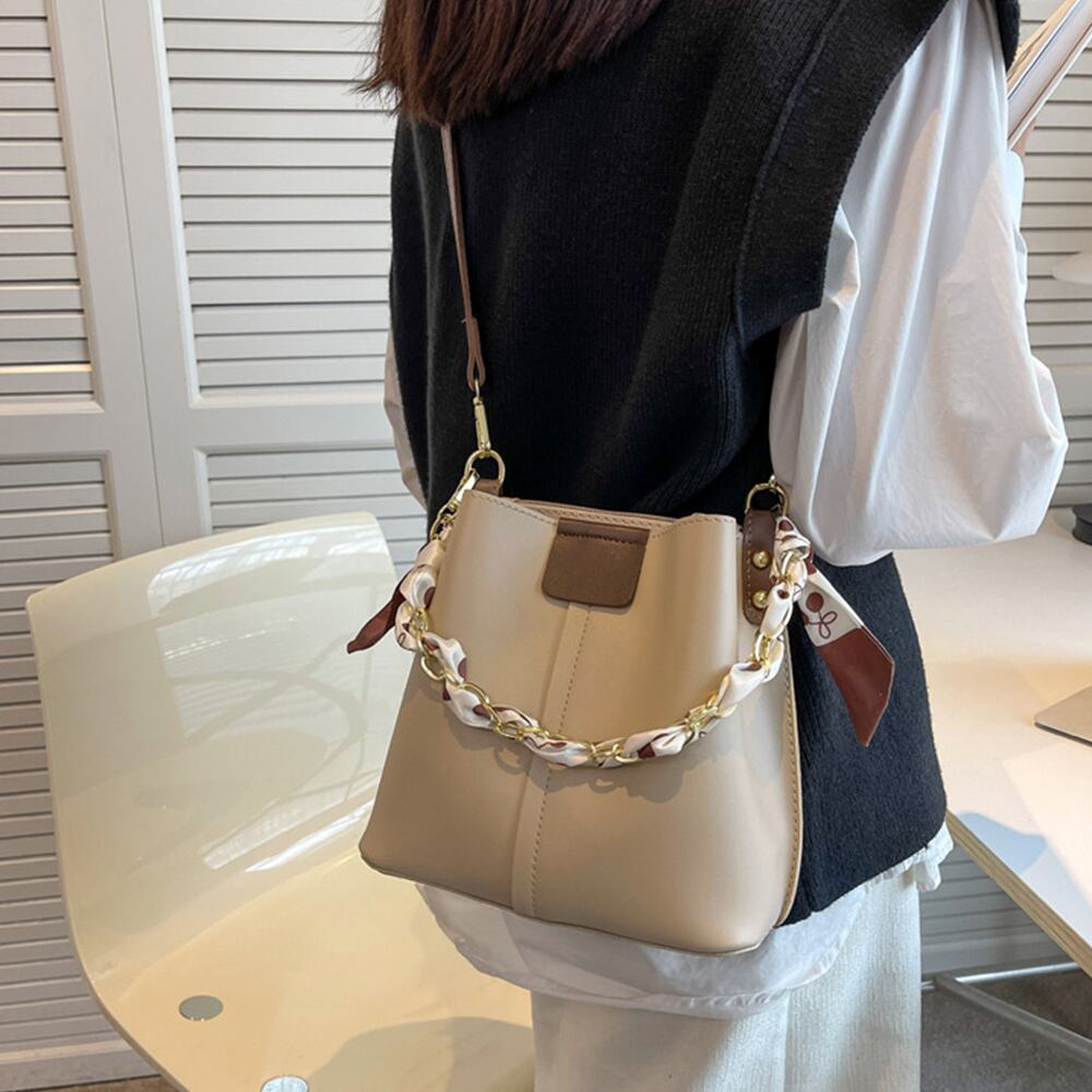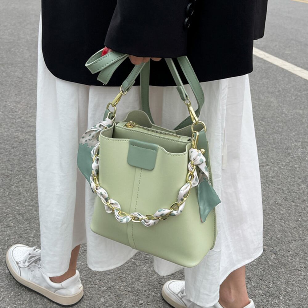 ショルダーバッグ 斜めがけ バケツバッグ レディース PUレザー 手提げバッグ スカーフ付き