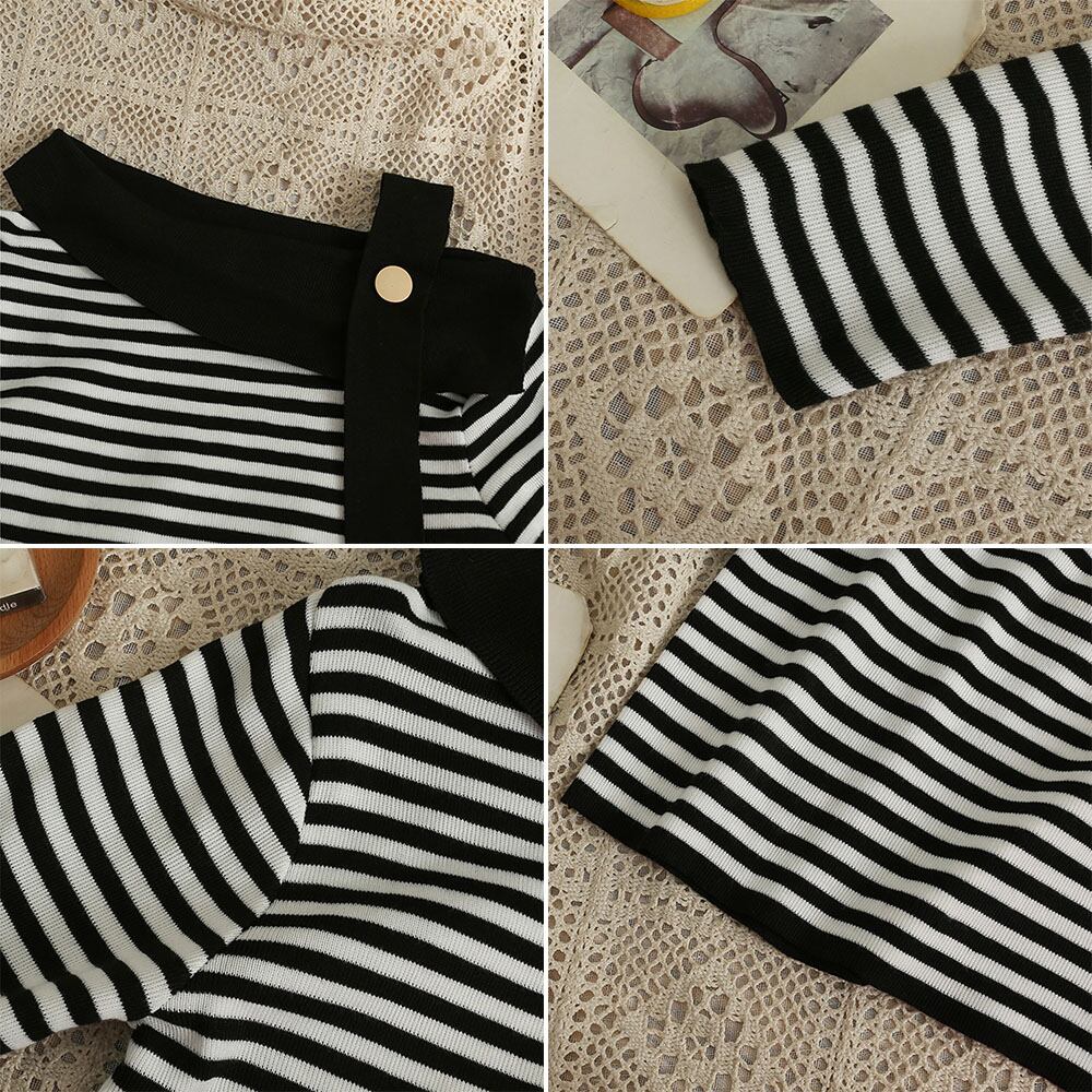 ワンショルダー ボーダー柄 ニットトップス ニットプルオーバー アシンメトリーネック レディース