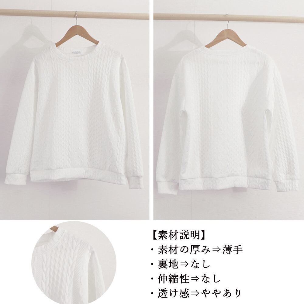 無地 プルオーバー 長袖トップス 春秋 エンボス加工 白