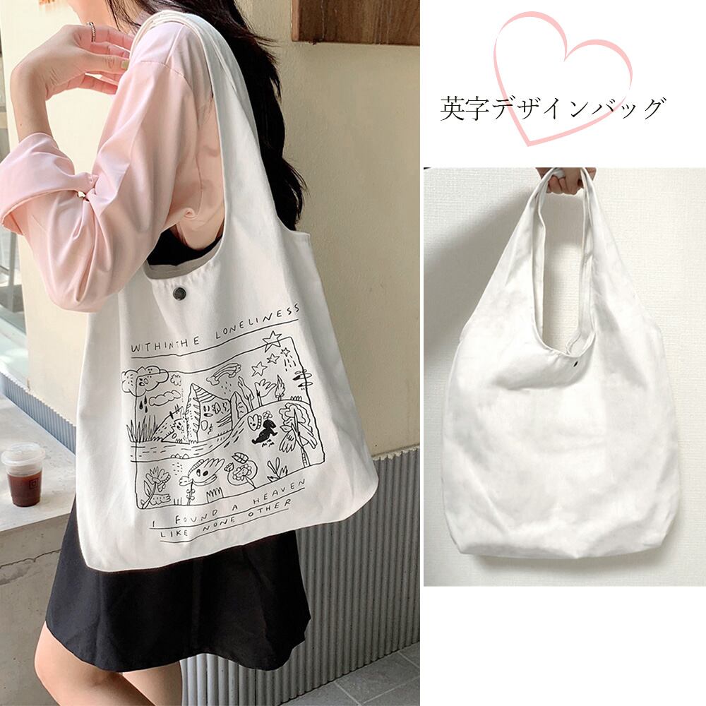 英字デザインバッグ キャンバストート春 漫画グラフィック鞄