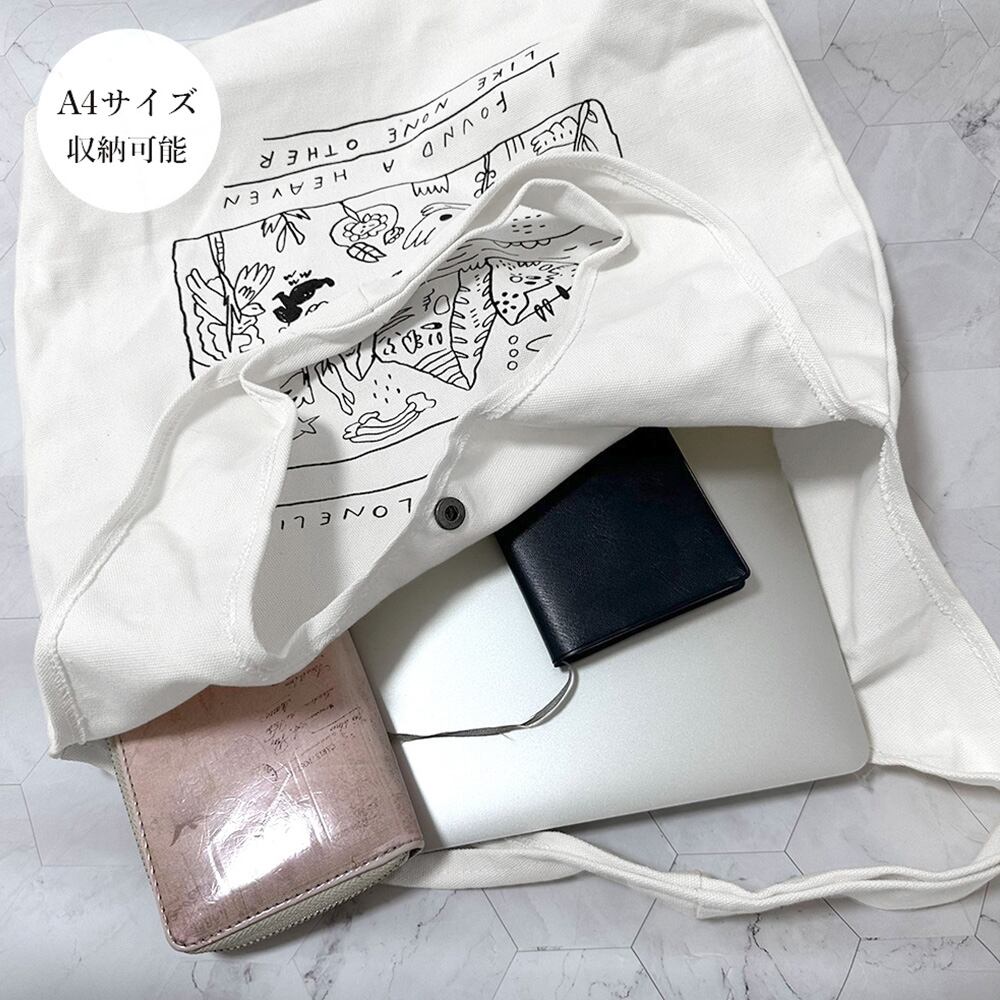 パッと目を引くアートプリントを施したキャンバストートバッグ