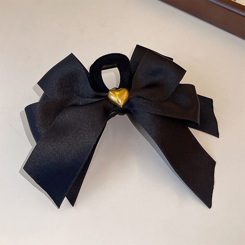 ヘアクリップ リボンハート飾り レディース ヘアアクセサリー バンスクリップ ベルベット