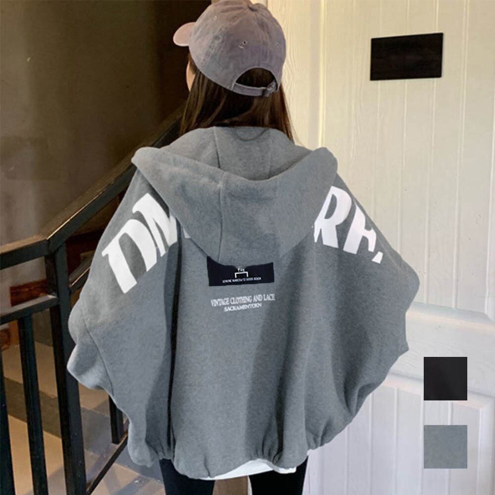 長袖 カジュアル フード付きブルゾン ドロップショルダー 裏微起毛トレーナー オシャレ ショート バックロゴ