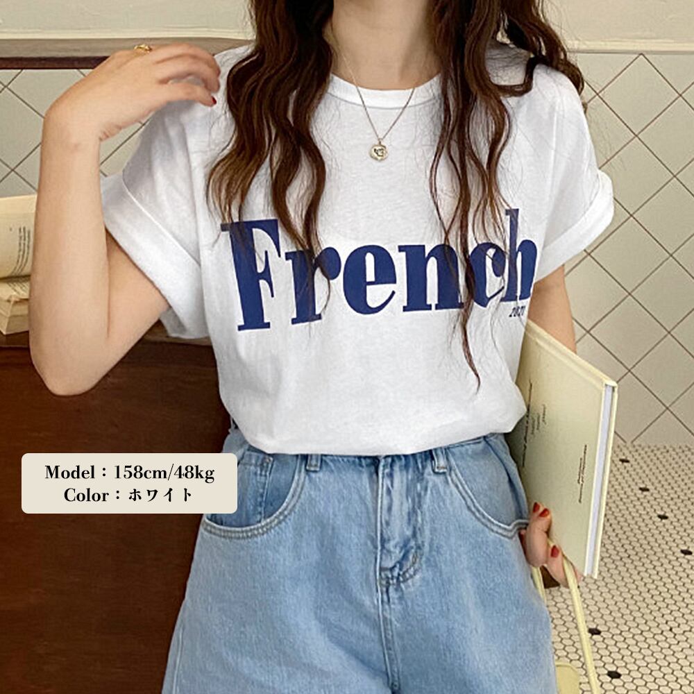 Tシャツ フレンチスリーブ 英字ロゴTシャツ レディース プリントTシャツ 半袖 カットソー クルーネック