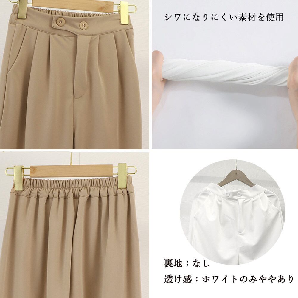 ストレートパンツ レディース美脚 セミワイドパンツ タック入り ウエストゴム