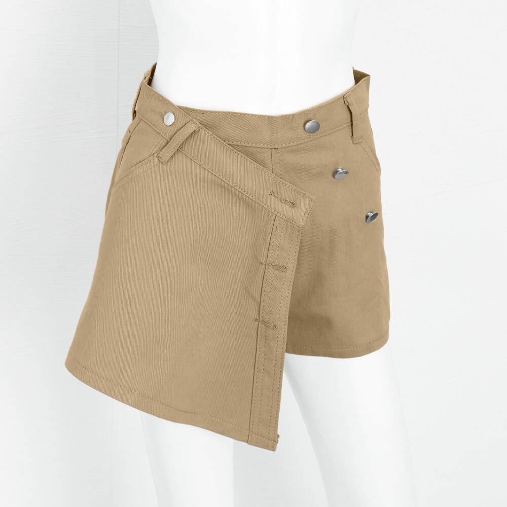 前からはスカートに見えて、後ろからはパンツに見えるキュロットデザイン。