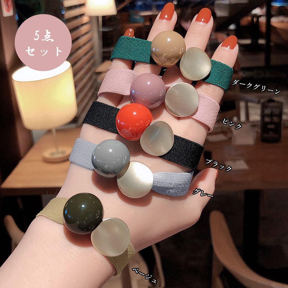 ヘアゴム 5本セット ヘアアクセサリー 人気 カラーボール メタルプレート 平ゴムセット 髪飾り