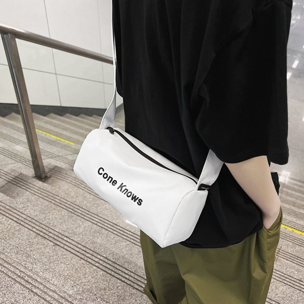 レディース 斜めがけバッグ メンズ コンパクトボディバッグ スポーツ ユニセックスメッセンジャーバッグ ロゴ円筒型カバン