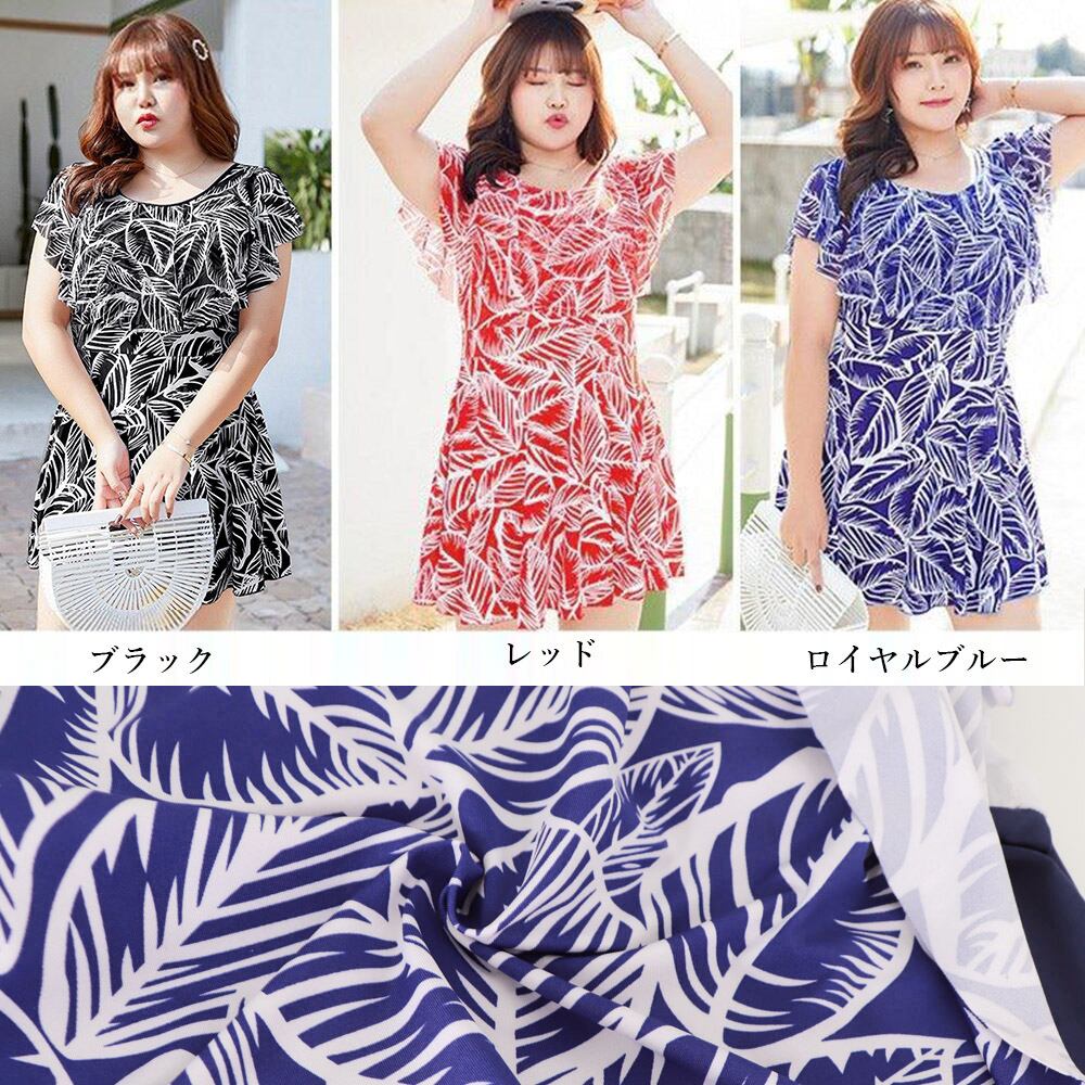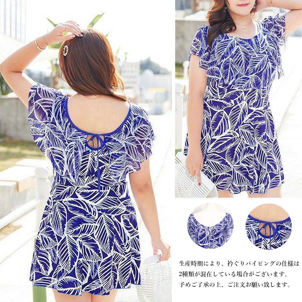 オールインワン水着 ぽっちゃり 水着 葉柄 レディース 体型カバー水着 大きいサイズ 大人可愛い