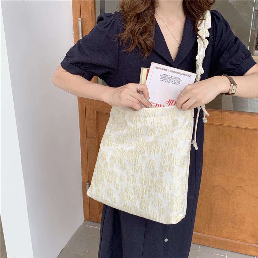 トートバッグ 花柄 ショルダーバッグ 軽量 レディース 肩掛けカバン エコバッグ フリル持ち手 A4収納