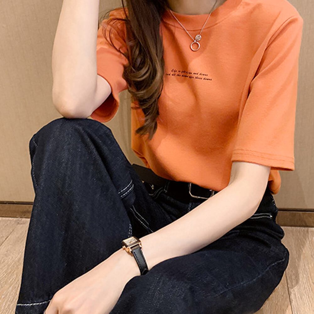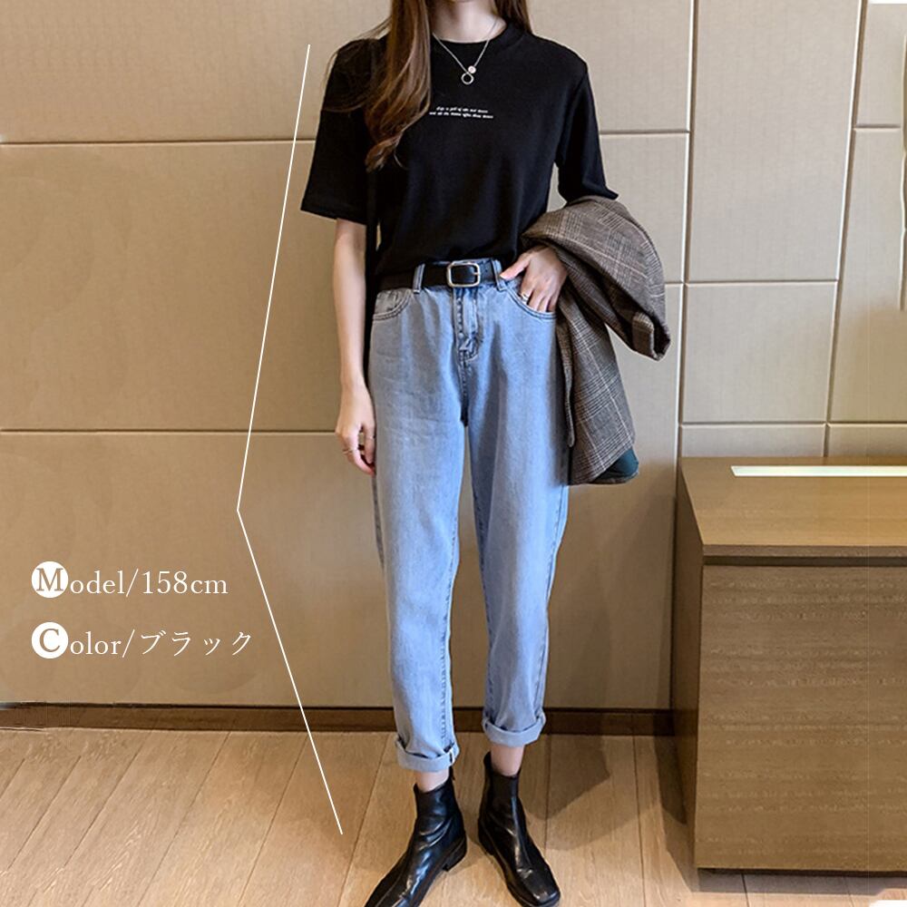 tシャツ 夏 ロゴ レディース 半袖 カットソー ラウンドネック 英字プリント ゆったり