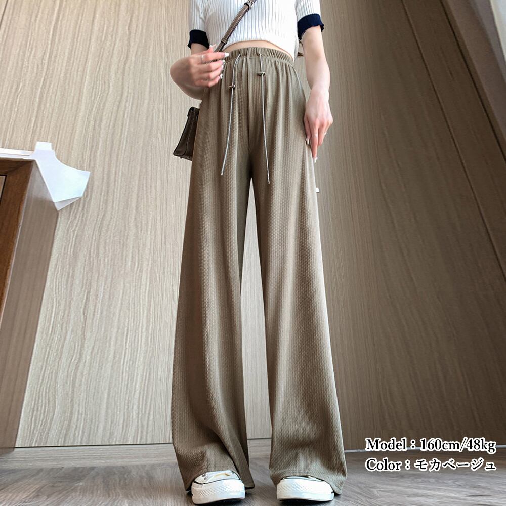 レディース 冷感タッチサマーパンツ カジュアル ワイドレッグズボン 通勤通学ストレートパンツ ウエストゴム ボトムス春夏