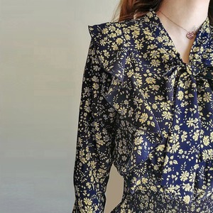 顔周りを柔らかく女性らしい印象に魅せてくれる、花柄ボウタイリボンワンピース