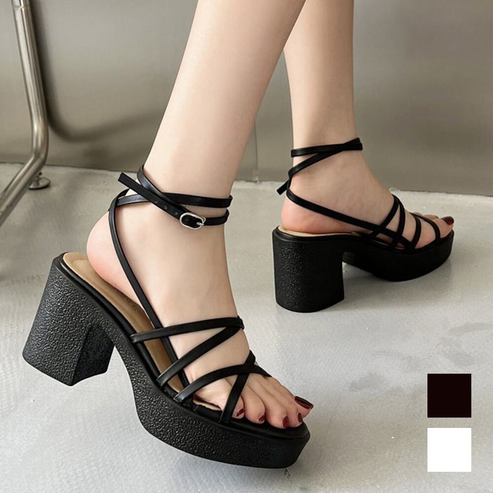 ハイヒール クロスストラップサンダル レディース 厚底サンダル スクエアトゥ 軽量 サマーサンダル