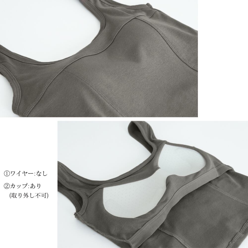 タンクトップ ショート丈 カップ付き レディース インナートップス Uネック 無地 キャミソール