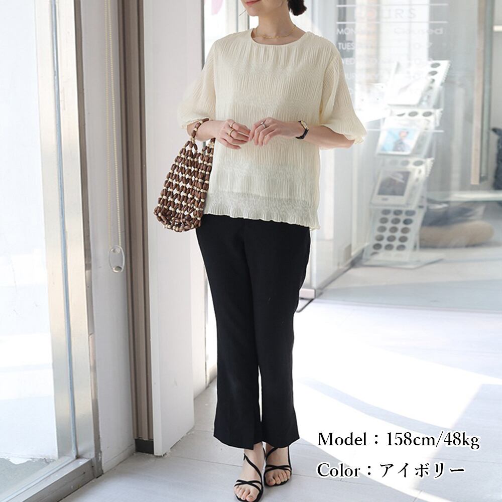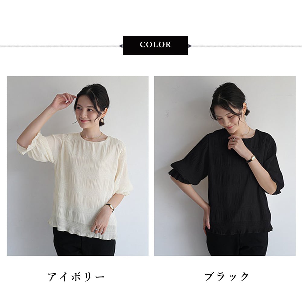 ブラウス レディース プリーツブラウス 夏 大人可愛い 薄手 カットソー ラウンドネック 夏トップス