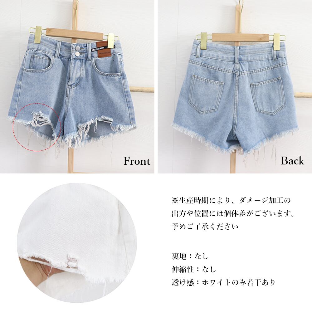 デニム ショートパンツ ダメージ加工 ホットパンツ レディース ハイウエスト ショーパン ヴィンテージ風