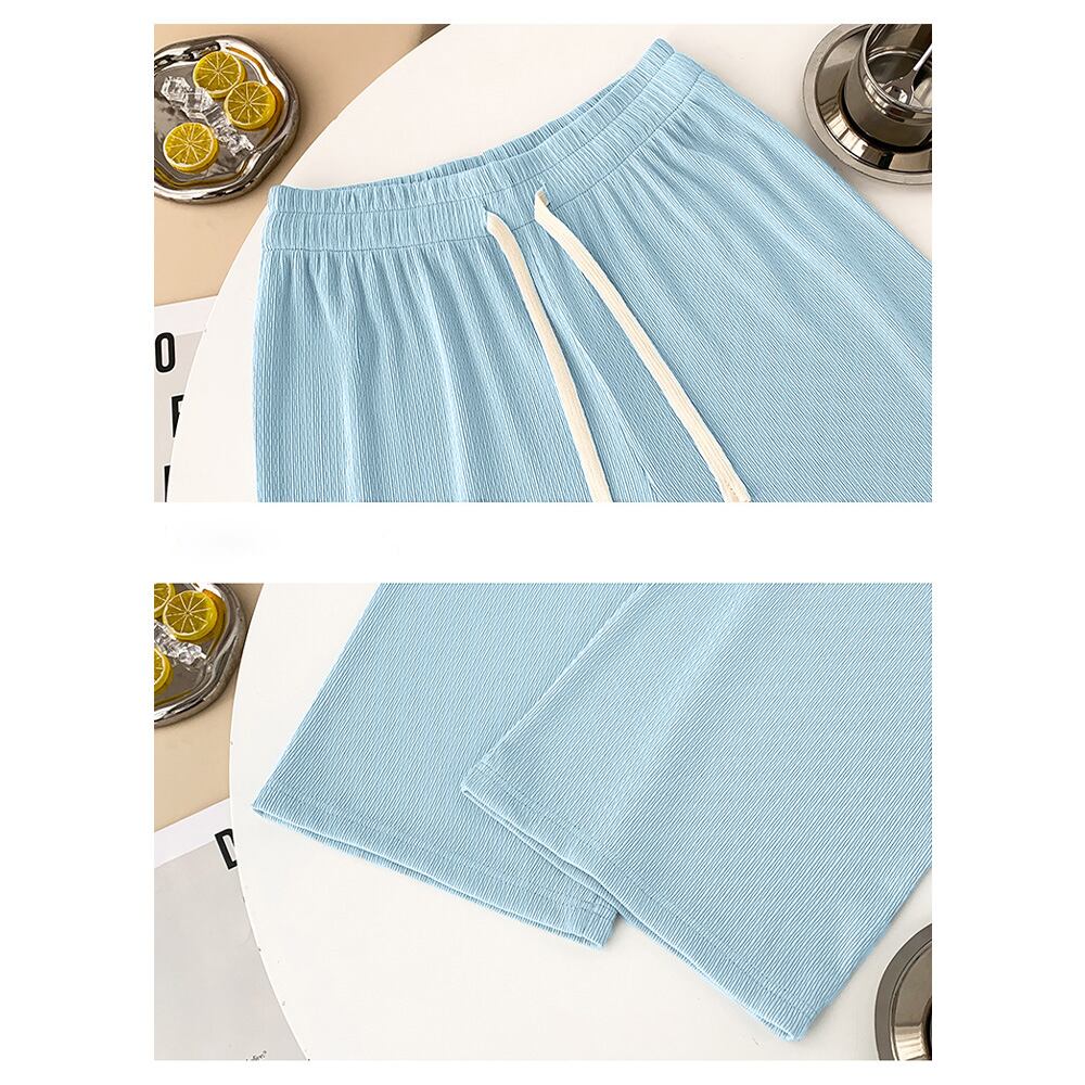 セミワイドパンツ ハイウエスト ロングパンツ レディース ウエストゴム サマーパンツ カジュアル