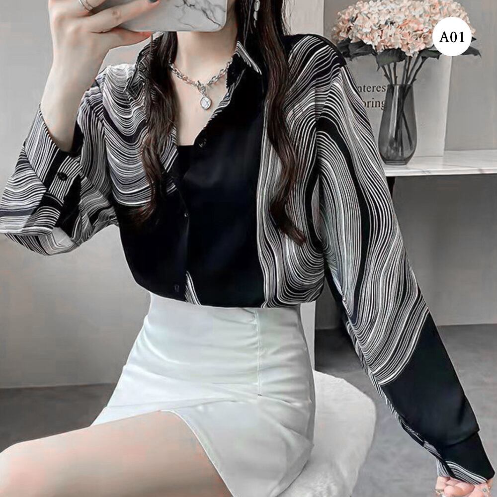 シャツブラウス 柄 長袖 レディース 春秋夏 おしゃれ 襟付きブラウス 着やせ ゆったり シャツカーディガ