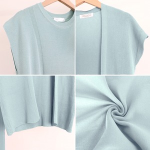 フレンチスリーブなので肩ラインと二の腕をカバーして華奢見せ、リブの縦長見せによってSTYLEUPが実現