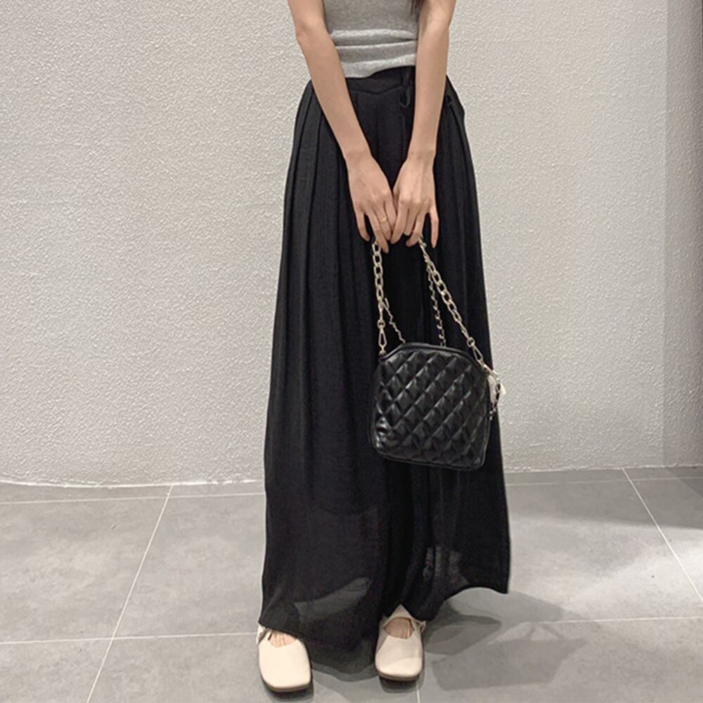 上質な天然素材にスカート見えする女性らしいDesign、ラフながらも優雅で上品な風合いが魅力のとろみロングパンツ