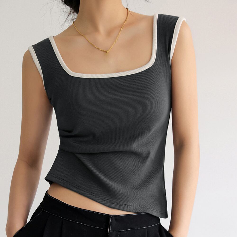 タンクトップ スクエアネック 夏服 レディース ノースリーブ インナートップス ベーシック 部屋
